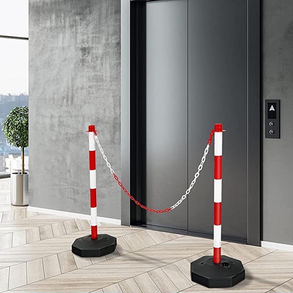 Dopravný stĺpik s plastovou reťazou, plniteľný vodou alebo pieskom, na oplotenie 4 rôznych oblastí.-Alinda.sk