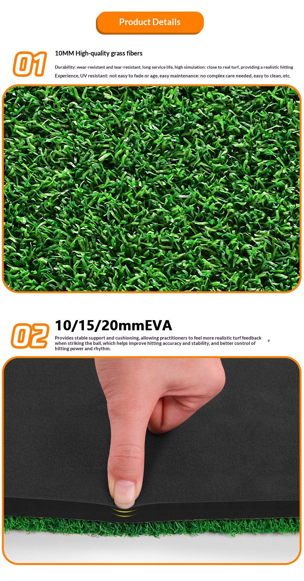 Material: High-density foam base + PP turf